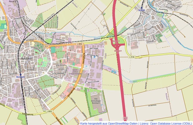 Lage: Die Liegenschaft befindet sich am Stadtrand von Butzbach, in einem Gewerbegebiet mit direktem Autobahnanschluss zur A5 nach Frankfurt und Kassel. Butzbach ist eine Stadt im hessischen Wetteraukreis, am nordöstlichen Übergang des Taunus zur Wetterau. In sehr guter Verkehrslage besitzt der Standort am Rande des Rhein-Main-Gebiets direkte Verbindungen nach Frankfurt und dem Rhein-Main-Airport. Über das nahe Gambacher Kreuz und die A45 gibt es Verbindungen nach Köln und ins Ruhrgebiet.