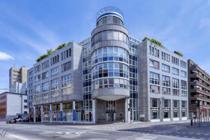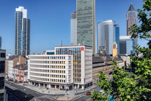 Das 12 geschossige Bürogebäude befindet sich ebenfalls im Gutleutviertel in unmittelbarer Nähe zum Main und den neu errichteten Wohnimmobilien am ehemaligen Westhafen.